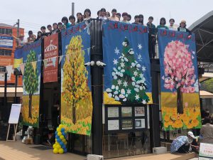 西広島駅前のKOI PLACEで、ウクライナ支援の大壁画キッズゲルニカ「Pray for Peace Ukraine」を展示しました。