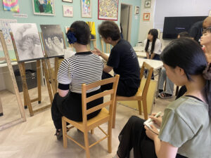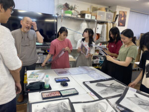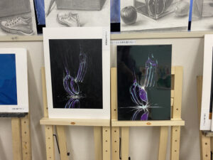 入試の合格作品も見せてもらえたので、みな興味津々でしたよ。 この経験が大学選びの一助になるといいですね。