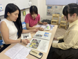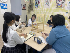 ディスカッション課題は、プロダクトデザイン専攻の入試で実際に行われた課題を参考に取り組みました。 アトリエぱおの教室にある子ども用の椅子を観察し、気づいたことや改善点を話し合います。