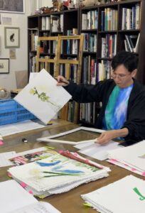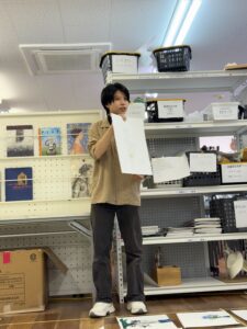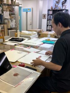 こちらは、作品を美しく額装するためのトリミングや額縁の選定にお越しいただいた、