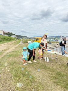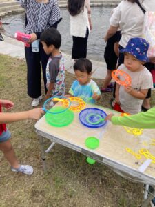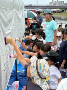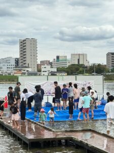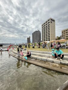 太田川河川敷のじゃぶじゃぶ池でさまざまなレクリエーションを行いました。