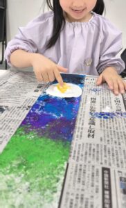 いろんなお話をしながら、みんなで「おつきさまのみえる風景」をつくりました。