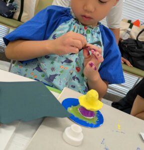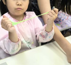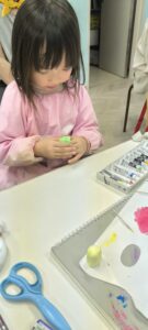 粘土を伸ばしたり、こねこねしたり、まるめたり。