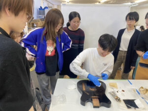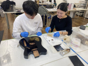 芸大美大受験科  昼間部生のY君が自由制作で取り組んでいる漆塗りのギター。