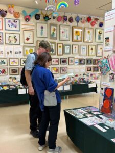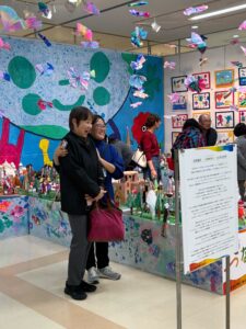 お孫さんの作品を嬉しそうにごらんになるおじいちゃま、おばあちゃま。