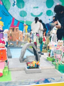 足元に広がるのは平和な世界を表現した巨大ジオラマ。
