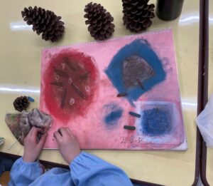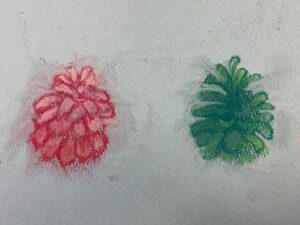本物の松ぼっくりをじっくりと見てパステルで描くレッスン「じっくり松ぼっくり」