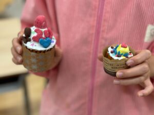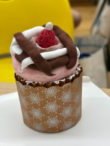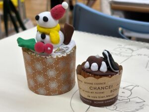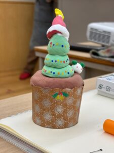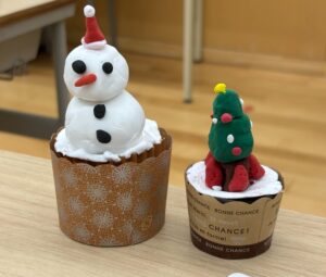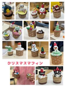 安田小AS教室ジュニアクラスの12月最後のレッスンは、「クリスマス・マフィン」 粘土でクリスマス感あふれるマフィンを作りました。