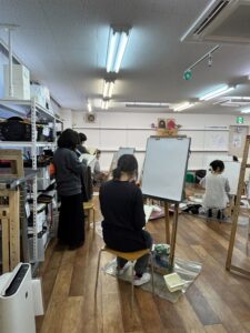 初日のポーズ初めには誰言うと無く多くの生徒がクロッキーから入っていました。 多角的な視点でモチーフを見つめる意識がついてきたと感じます。