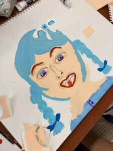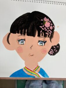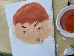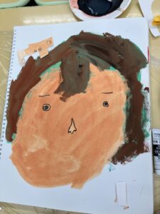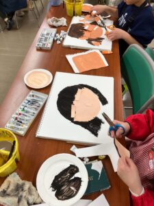 教室に置かれた福笑いで遊んで、盛り上がったところで制作スタートです。
