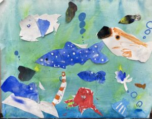 キッズ、ジュニアクラスでは「コラージュ」のレッスンが始まっています。 今回のレッスンでは絵本「はらぺこあおむし」でお馴染みの作家、エリック・カールのコラージュ技法を使って作ります。