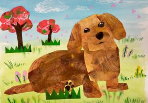 コラージュは、絵本『はらぺこあおむし』で子どもたちになじみのあるエリック・カールが好んで使った技法です。