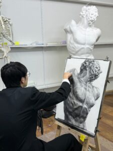いつも描いている位置より少し遠くにイーゼルが設定されているだけでも、