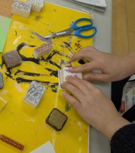 スタンプの柄が何に見えるか想像を膨らませながら制作しました