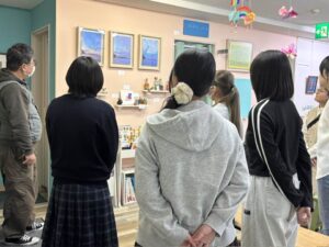 こちらは佐々木高信講師が受験科学生に自作の作品解説をしているところ。