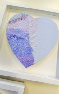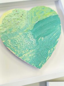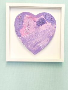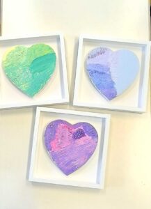 ハート型の特別なキャンバスに 思い思いに色をかさねます。 絵具にあるものを混ぜたり、 パレ