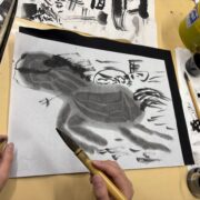 みなさんこんにちは、子どもクラス担当の中島です。 こどもクラスでは今、墨を使った馬の水墨画