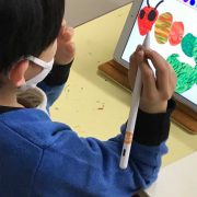 プチクラス(幼稚園、保育園児さん対象)で、iPadを活用した「デジタルコラージュ」のレッスン。 iPadを触るのは初めて...
