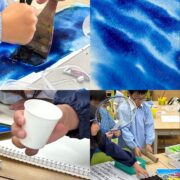 安田小学校アフタースクール教室キッズクラス1年生クラス 水彩絵の具3色と、幅広の刷毛と筆をつかって、 〈たらしこみ技法 ...