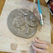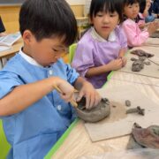 安田小アフタースクール教室キッズクラス1年生 5月31日は「ぼく わたしとぱお②」本番制作 陶土で自分の姿をレリーフで表...