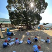 11月の晴天、暑くも寒くもない貴重な1日に、園庭にある大楠を皆で描きました。 樹の構造や各部分の名称と役割...