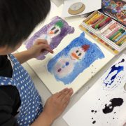 プチ・キッズ・ジュニアクラスの1月レッスンの初回は、「水彩技法」 水彩絵の具を使って