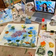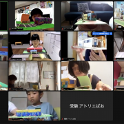 アトリエぱおには、オンラインキッズクラスがあります。 レッスン中の己斐教室3階・オンライン