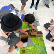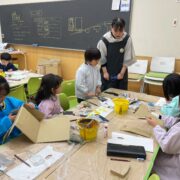 子どもクラスで、みんなで協力してひとつの作品~わたしたちの街 ひろしま~を作っています。