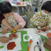 プチクラスでも、展覧会に展示する共同制作「welcome to our home」の制作に