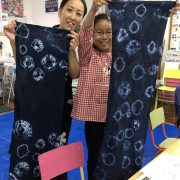 8/2(金)の西広教室では「藍染め手ぬぐい」でした♪ 藍の染料と絞り技法で、オリジナルの手