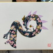 こんにちは キッズクラスでコラージュの技法を使う「辰の絵」に取り組みました。 友禅紙などの