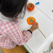 園児さん対象の「プチクラス」 季節の果物を描きました。 モチーフは、柿や柚子。 3歳から6