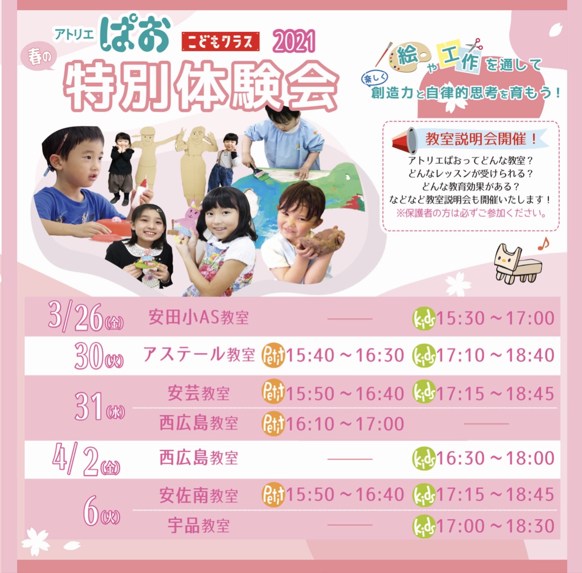 春休みはアトリエぱおの《春の特別体験会》にお越しください!今年は6教室で行いますよ🌸