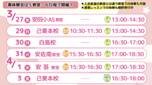 例)宇品教室をご希望でも、己斐本校での体験が可能です◎*