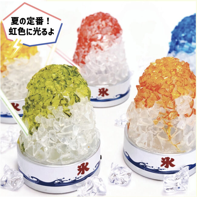 K.かき氷ランプ年齢:3歳~小6 教室:己斐本校安芸広島駅前安佐南五日市大塚可部アステールCLiP HIROSHIMA南オンライン 所要時間:90分 金額:¥4,500(受講料¥2,100/材料費¥2,400) 暗闇でキラキラ光る!? リサイクルガラスで作る夏色ランプ