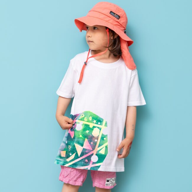 P.ステンシル☆Tシャツ年齢:2歳~年中 教室:CLiP HIROSHIMA 所要時間:70分 金額:¥3,500(受講料¥1,400/材料費¥2,100) いろいろな形を切って、貼って、ステンシル版画を楽しもう!