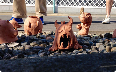 丸めた古新聞を芯にしてその上から陶土を貼付けで造形し、乾燥後800度で焼成したテラコッタの技法です。